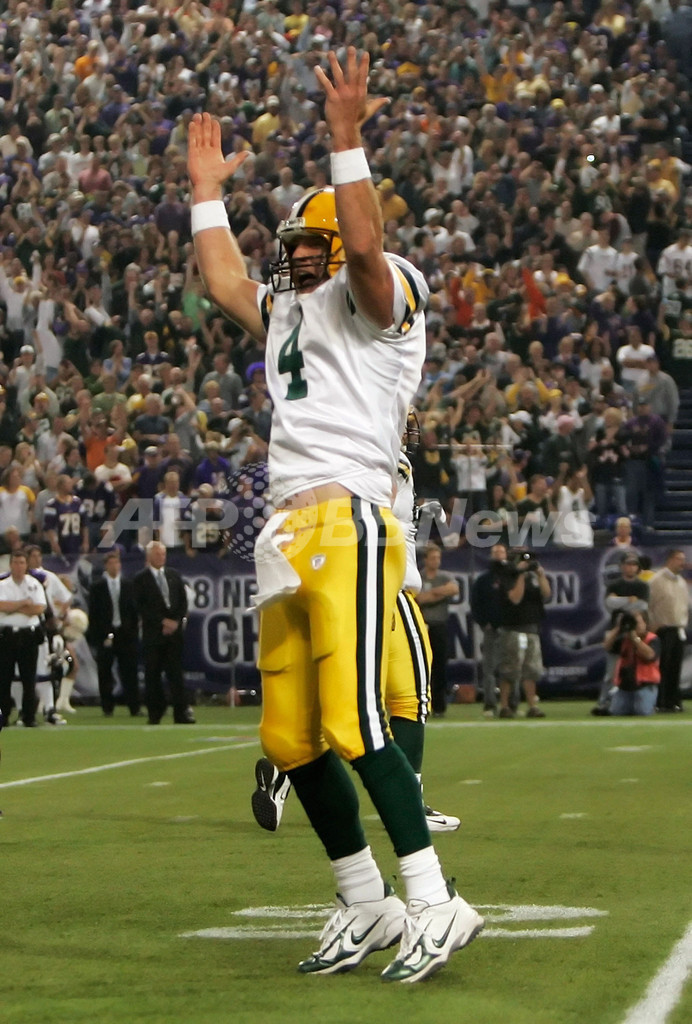 また、ファーヴは既に9月16日に行われたニューヨーク・ジャイアンツ(New York Giants)戦での勝利で、NFLのQB通算最多勝利数を149とし、元デンバー・ブロンコス(Denver Broncos)のQBジョン・エルウェイ(John Elway)氏の記録も更新している。(c)AFP