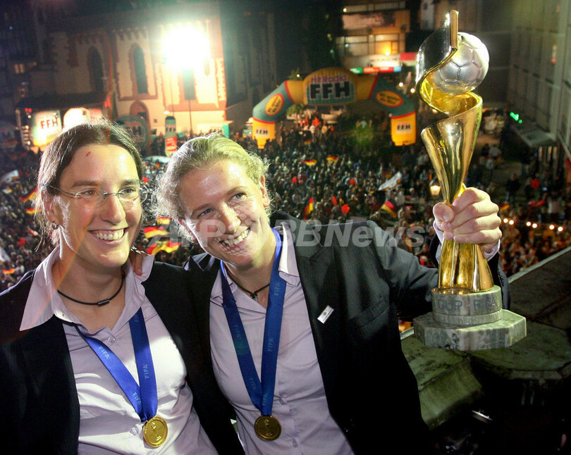 スポーツ サッカー 女子サッカー07W杯 大会連覇のドイツ代表が凱旋帰国 2007年10月2日 12:50 発信地:フランクフルト/ドイツ [ ヨーロッパ ドイツ ] このニュースをシェア ‹ › ❮ 2/15 ❯ フランクフルト市庁舎のバルコニーからサポーターを背に記念撮影を行うビルギット・プリンツ(%%Birgit Prinz%%、左)とケルスティン・シュテゲマン(%%Kerstin Stegemann%%)。(c)AFP/BORIS ROESSLER 画像作成中 ! 【10月2日 AFP】女子サッカー07W杯・決勝でブラジルを2-0で降して大会連覇を果たしたドイツ代表が1日、優勝から一夜明けて凱旋帰国を果たした。(c)AFP サッカー 一覧へ> メディア・報道関係・法人の方向け 写真・動画 購入のお問合せ>