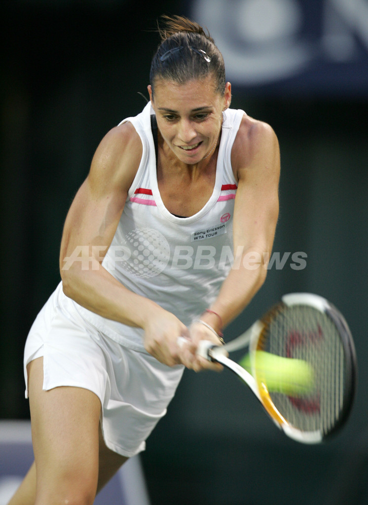 【10月4日 AFP】テニス、AIGジャパン・オープン2007(AIG Japan Open Tennis Championships 2007)、女子シングルス準々決勝。大会第8シードのフラビア・ペネッタ(Flavia Pennetta、イタリア)は、大会第2シードのサニア・ミルザ(Sania Mirza、インド)と対戦。ペネッタはセットカウント2-0(6-4、6-4)のストレートでミルザを降し、準決勝進出を決めた。(c)AFP