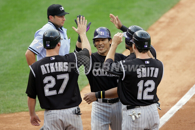 【10月5日 AFP】07MLBプレーオフ、ナ・リーグ地区シリーズ、フィラデルフィア・フィリーズ(Philadelphia Phillies)vsコロラド・ロッキーズ(Colorado Rockies)第2戦。1番・二塁で先発出場したロッキーズの松井稼頭央(Kazuo Matsui)は、4回表に迎えた第3打席でプレーオフ第1号満塁本塁打を放つなど5打数3安打5打点を記録。試合はロッキーズが10-5でフィリーズに連勝し、リーグ優勝決定シリーズ進出へ王手をかけた。