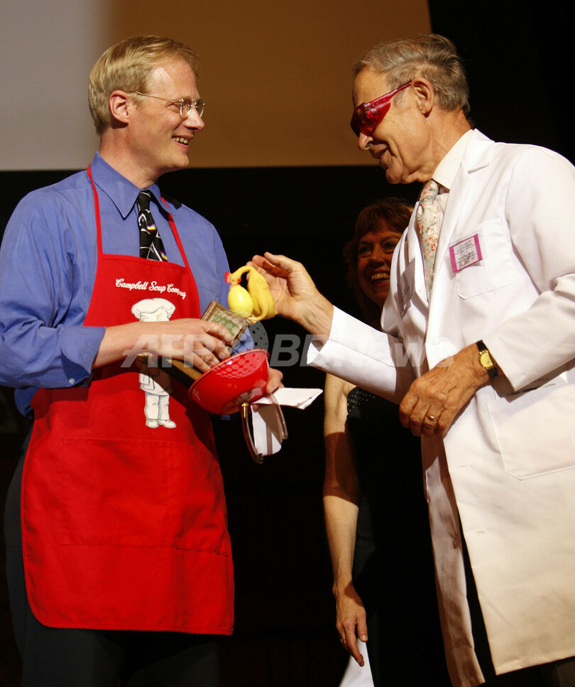 【10月5日 AFP】(写真追加)今年で17回目を迎えるイグ・ノーベル賞(Ig Nobel Prize)の2007年度受賞式が4日、米マサチューセッツ(Massachusetts)州にあるハーバード大学(Harvard University)で行われた。今年は、「バイアグラによってハムスターの時差を解消する」研究や「ウシのふんからバニラ香料を抽出する」研究などが受賞した。