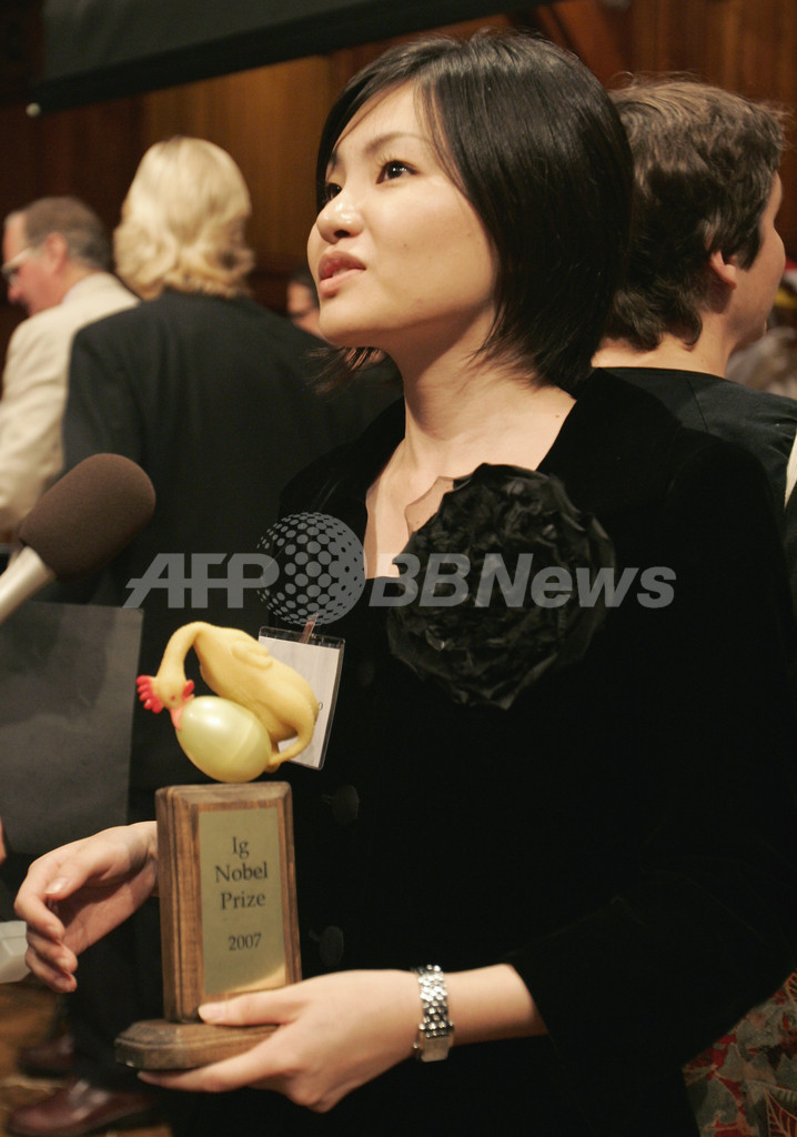 【10月5日 AFP】(写真追加)今年で17回目を迎えるイグ・ノーベル賞(Ig Nobel Prize)の2007年度受賞式が4日、米マサチューセッツ(Massachusetts)州にあるハーバード大学(Harvard University)で行われた。今年は、「バイアグラによってハムスターの時差を解消する」研究や「ウシのふんからバニラ香料を抽出する」研究などが受賞した。