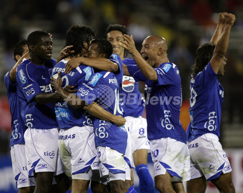 スポーツ サッカー ミジョナリオス PK戦の末準々決勝進出を決める 2007年10月5日 17:13 発信地:サンティアゴ/チリ [ 中南米 チリ ] このニュースをシェア ‹ › ❮ 8/8 ❯ ゴールを喜ぶミジョナリオスの選手たち。(c)AFP/MARTIN BERNETTI 画像作成中 ! 【10月5日 AFP】サッカー、コパ・スダメリカーナ2007(Copa Sudamericana 2007)・決勝トーナメント1回戦、コロコロ(Colo Colo、チリ)vsミジョナリオス(Millonarios、コロンビア)、第2戦。試合は1-1のドローに終わり、2戦合計スコアでも2-2のドローとなったためPK戦となり、PK戦を7-6で制したミジョナリオスが準々決勝進出を決めた。(c)AFP サッカー 一覧へ> メディア・報道関係・法人の方向け 写真・動画 購入のお問合せ>