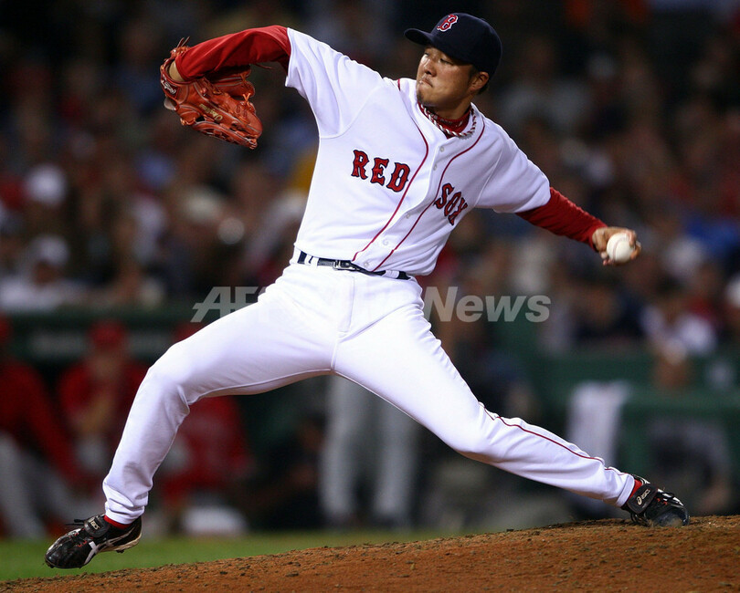 【10月6日 AFP】07MLBプレーオフ、ア・リーグ地区シリーズ、ボストン・レッドソックス(Boston Red Sox)vsロサンゼルス・エンゼルス・オブ・アナハイム(Los Angeles Angels of Anaheim)第2戦。レッドソックスの岡島秀樹(Hideki Okajima)は、7回一死から4番手で登板し、1回1/3を投げて無安打無失点2奪三振で降板した。試合は3-3の同点で迎えた9回裏にマニー・ラミレス(Manny Ramirez)が3点本塁打を放ち3-6でレッドソックスがサヨナラ勝ちを収め、レッドソックスは2連勝を飾りリーグ優勝決定シリーズ進出へ王手をかけた。(c)AFP
