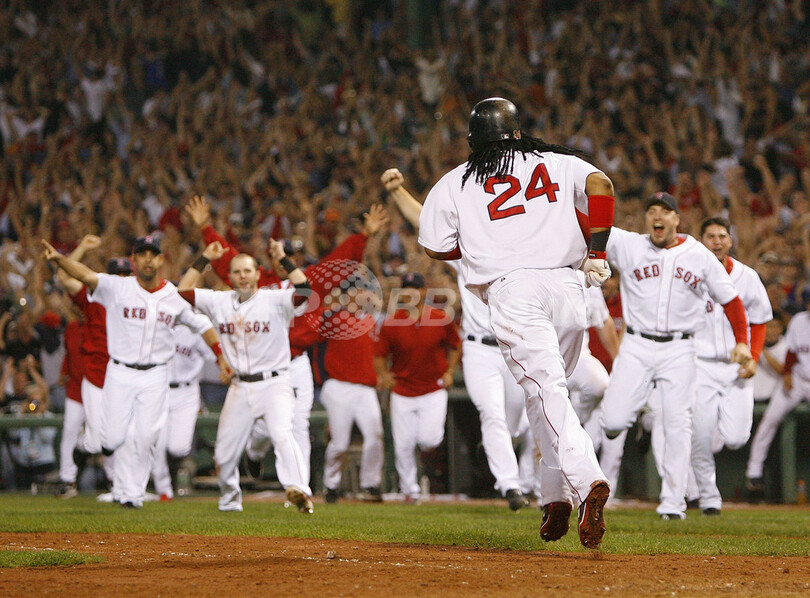 【10月6日 AFP】07MLBプレーオフ、ア・リーグ地区シリーズ、ボストン・レッドソックス(Boston Red Sox)vsロサンゼルス・エンゼルス・オブ・アナハイム(Los Angeles Angels of Anaheim)第2戦。試合は3-3の同点で迎えた9回裏にマニー・ラミレス(Manny Ramirez)が3点本塁打を放ち3-6でレッドソックスがサヨナラ勝ちを収め、レッドソックスは2連勝を飾りリーグ優勝決定シリーズ進出へ王手をかけた。(c)AFP