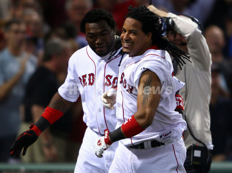【10月6日 AFP】07MLBプレーオフ、ア・リーグ地区シリーズ、ボストン・レッドソックス(Boston Red Sox)vsロサンゼルス・エンゼルス・オブ・アナハイム(Los Angeles Angels of Anaheim)第2戦。試合は3-3の同点で迎えた9回裏にマニー・ラミレス(Manny Ramirez)が3点本塁打を放ち3-6でレッドソックスがサヨナラ勝ちを収め、レッドソックスは2連勝を飾りリーグ優勝決定シリーズ進出へ王手をかけた。(c)AFP