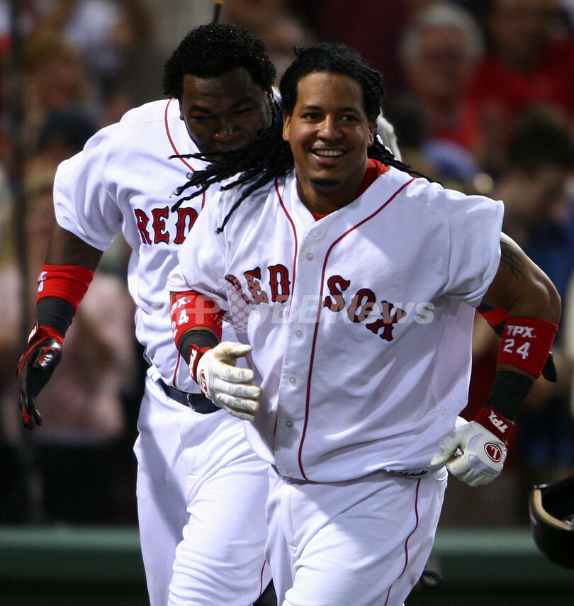 【10月6日 AFP】07MLBプレーオフ、ア・リーグ地区シリーズ、ボストン・レッドソックス(Boston Red Sox)vsロサンゼルス・エンゼルス・オブ・アナハイム(Los Angeles Angels of Anaheim)第2戦。試合は3-3の同点で迎えた9回裏にマニー・ラミレス(Manny Ramirez)が3点本塁打を放ち3-6でレッドソックスがサヨナラ勝ちを収め、レッドソックスは2連勝を飾りリーグ優勝決定シリーズ進出へ王手をかけた。(c)AFP