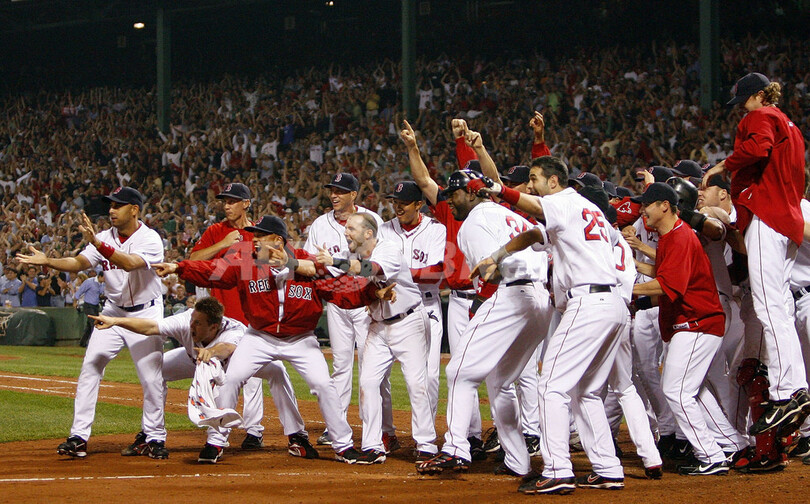 【10月6日 AFP】07MLBプレーオフ、ア・リーグ地区シリーズ、ボストン・レッドソックス(Boston Red Sox)vsロサンゼルス・エンゼルス・オブ・アナハイム(Los Angeles Angels of Anaheim)第2戦。試合は3-3の同点で迎えた9回裏にマニー・ラミレス(Manny Ramirez)が3点本塁打を放ち3-6でレッドソックスがサヨナラ勝ちを収め、レッドソックスは2連勝を飾りリーグ優勝決定シリーズ進出へ王手をかけた。(c)AFP