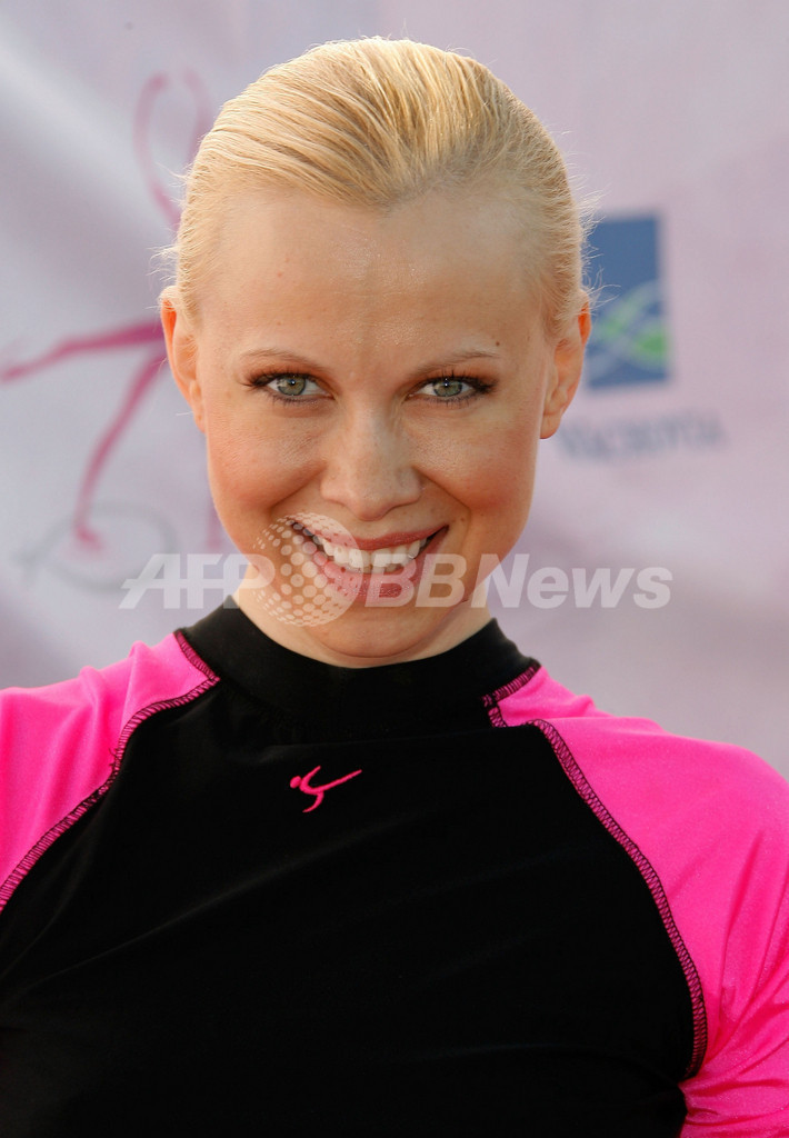【10月8日 AFP】(一部更新、写真追加)サンタモニカ(Santa Monica)のBarker Hangarで6日、仏製薬大手サノフィ・アベンティス(sanofi-aventis)と大手金融機関ワコビア(Wachovia)主催、女性のガンへの意識を高めるためにアイスリンクの上から呼びかけるイベント「Frosted Pink」が開催され、フィギュアスケート選手たちがパフォーマンスを披露した。(c)AFP/Getty Images