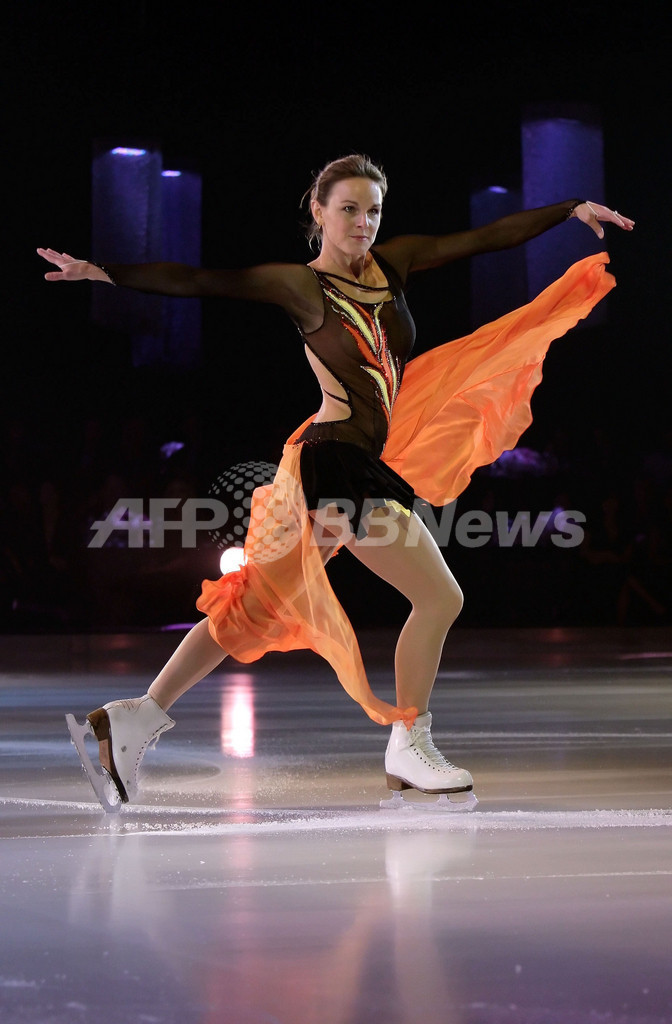 【10月8日 AFP】(一部更新、写真追加)サンタモニカ(Santa Monica)のBarker Hangarで6日、仏製薬大手サノフィ・アベンティス(sanofi-aventis)と大手金融機関ワコビア(Wachovia)主催、女性のガンへの意識を高めるためにアイスリンクの上から呼びかけるイベント「Frosted Pink」が開催され、フィギュアスケート選手たちがパフォーマンスを披露した。(c)AFP/Getty Images