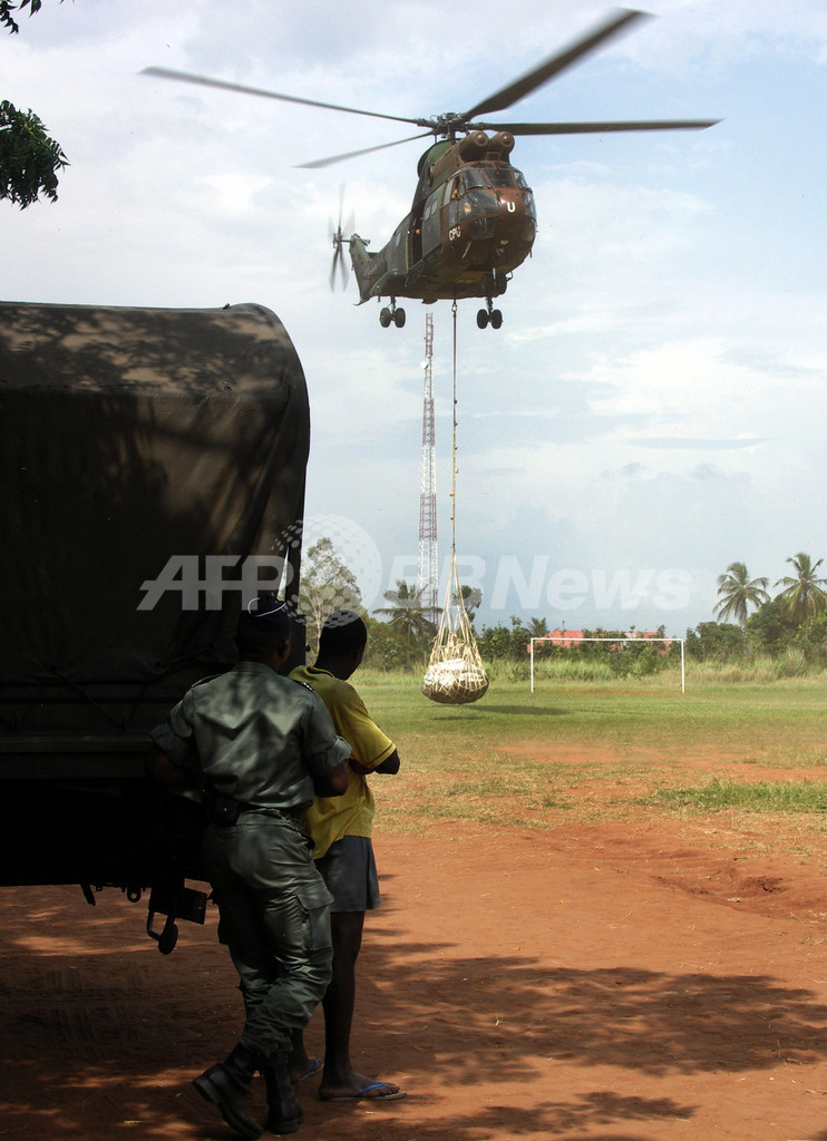 【10月7日 AFP】1か月以上にわたり西アフリカと中央アフリカの各地で記録的な大洪水による被害が出ているなか、コートジボワールのアビジャン(Abidjan)にある国連平和維持活動「国連コートジボワール活動(United Nations Operation in Cote d'Ivoire、UNOCI)」に参加中の仏軍ヘリコプターが5日、洪水で被災したトーゴ東部のAveveに救援物資を届けた。
