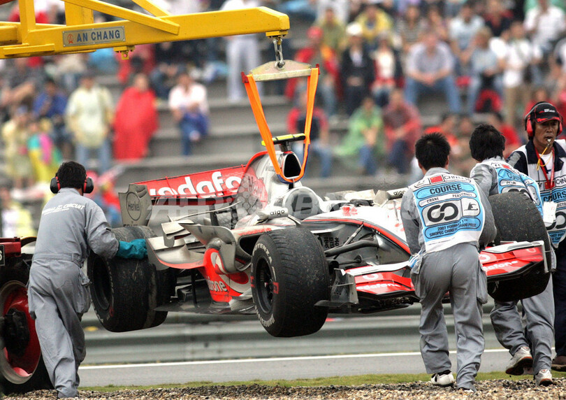 【10月7日 AFP】F1第16戦・中国GP(Chinese Grand Prix 2007)、決勝。ポールポジションからスタートしたマクラーレン・メルセデス(McLaren-Mercedes)のルイス・ハミルトン(Lewis Hamilton)は、タイヤにトラブルが発生しピットに入ろうとしたが、レーンの入り口付近でコントロールを失い、コースアウト。残り25周を残してデビュー以来初のリタイアに終わった。