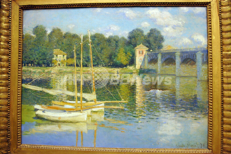 1874年作の『アルジャントゥイユの橋』は、パリ西部のセーヌ川(Seine)にかかる橋と、係留されているボートを描いた、縦60.5センチ、横80センチの作品。旧鉄道駅を改装したオルセー美術館は1986年に開館、19世紀後半から20世紀前半の美術品においてはフランス一の収蔵数を誇る。(c)AFP