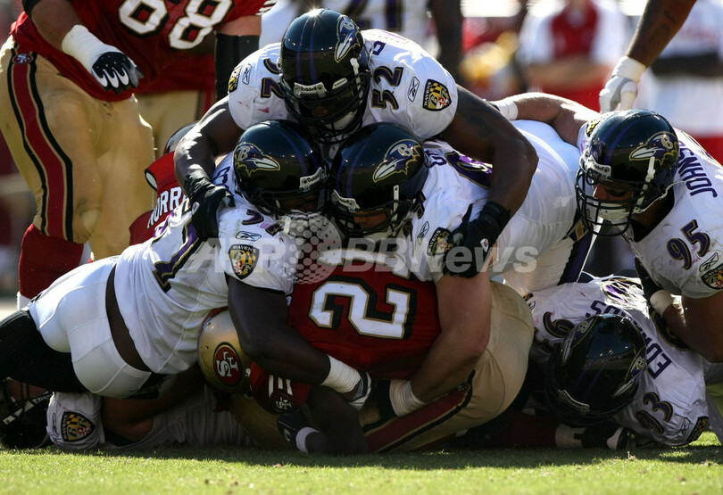スポーツ アメリカンフットボール レイヴンズ フォーティナイナーズを降す 2007年10月8日 16:10 発信地:サンフランシスコ/米国 [ 北米 米国 ] このニュースをシェア ‹ › ❮ 2/7 ❯ レイヴンズのディフェンスの潰されるフォーティナイナーズのRBフランク・ゴア(%%Frank Gore%%、下)。(c)AFP/Getty Images Jed Jacobsohn 画像作成中 ! 【10月8日 AFP】07NFL・第5週、サンフランシスコ・フォーティナイナーズ(San Francisco 49ers)vsボルティモア・レイヴンズ(Baltimore Ravens)。試合はレイヴンズが9-7でフォーティナイナーズを降した。(c)AFP/Getty Images アメリカンフットボール 一覧へ> メディア・報道関係・法人の方向け 写真・動画 購入のお問合せ>