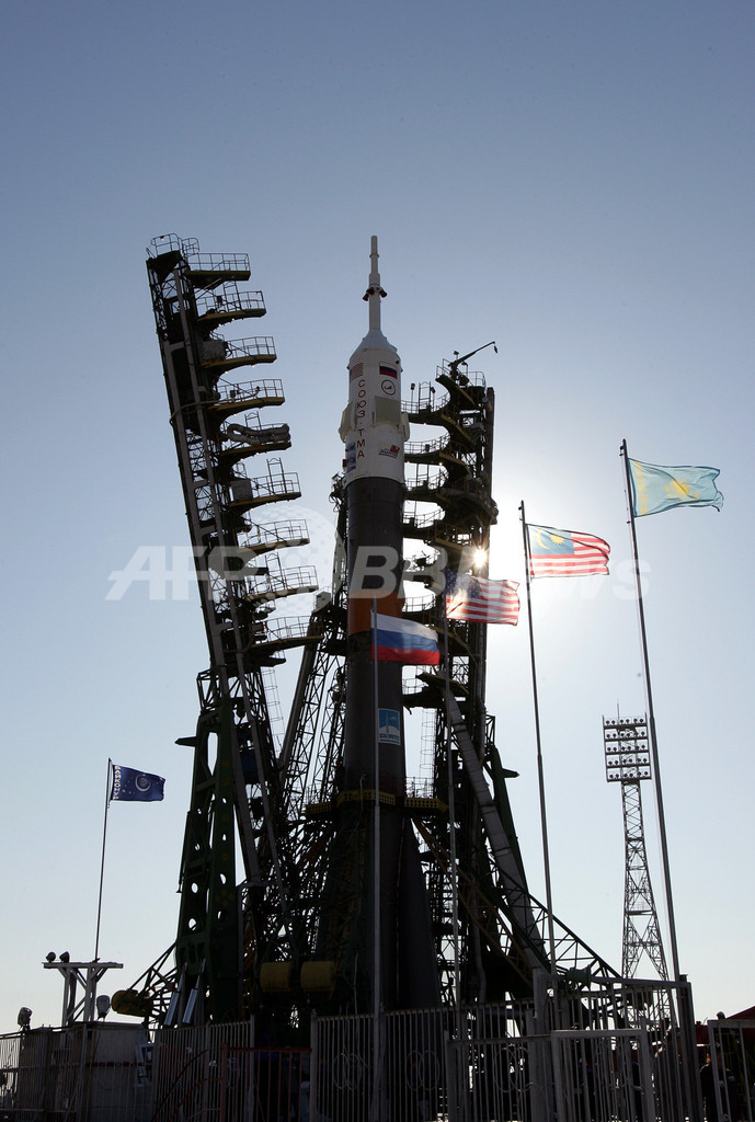 【10月9日 AFP】(一部訂正)マレーシア人初の宇宙飛行士を乗せ宇宙に飛び立つロシアのソユーズ(Soyuz)ロケットが8日、カザフスタンのバイコヌール(Baikonur)基地で発射台につき、打ち上げ準備を完了した。