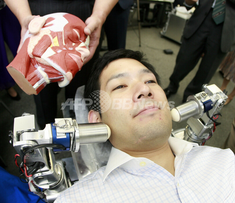 ニュース ライフ 早大研究室、医療用マッサージロボット発表 2007年10月9日 19:31 発信地:東京 [ アジア・オセアニア 東京 ] このニュースをシェア ‹ › ❮ 1/3 ❯ 2007目10月9日、早稲田大学(Waseda University)の高西淳夫(Atsuo Takanishi)教授が発表した新しい医療用マッサージロボット「WAO-1」による実演。(c)AFP/Yoshikazu TSUNO 画像作成中 ! 【10月9日 AFP】早稲田大学(Waseda University)の高西淳夫(Atsuo Takanishi)教授は9日、顎(がく)関節症や口腔(こうこう)乾燥、嚥下(えんげ)障害の患者のための新しい医療用マッサージロボット「WAO-1」を都内の研究室で発表した。潜在的な患者数は全国で約1000万人で、早稲田大学と朝日大学(Asahi University)は年内に臨床試験を開始する。(c)AFP ライフ 一覧へ> メディア・報道関係・法人の方向け 写真・動画 購入のお問合せ>