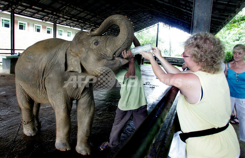 【10月10日 AFP】スリランカのピンナワラ(Pinnawala)にある「ゾウの孤児院(Elephant Orphanage)」が開設されたのは1975年。同国の野生動物局がジャングルで見つかった母親のいない子ゾウ3頭を、10ヘクタールのココナツ畑で飼育したのが始まりだった。当時は母親が死んだ、あるいは殺された赤ちゃんゾウがジャングルで多数見つかったため、もともとはそうしたゾウの保護・育成がこの施設の目的だった。その後は徐々に規模を拡大し、現在は73頭のさまざまな年齢層のゾウを保護。観光客も多数訪れる観光スポットの1つとなっている。(c)AFP