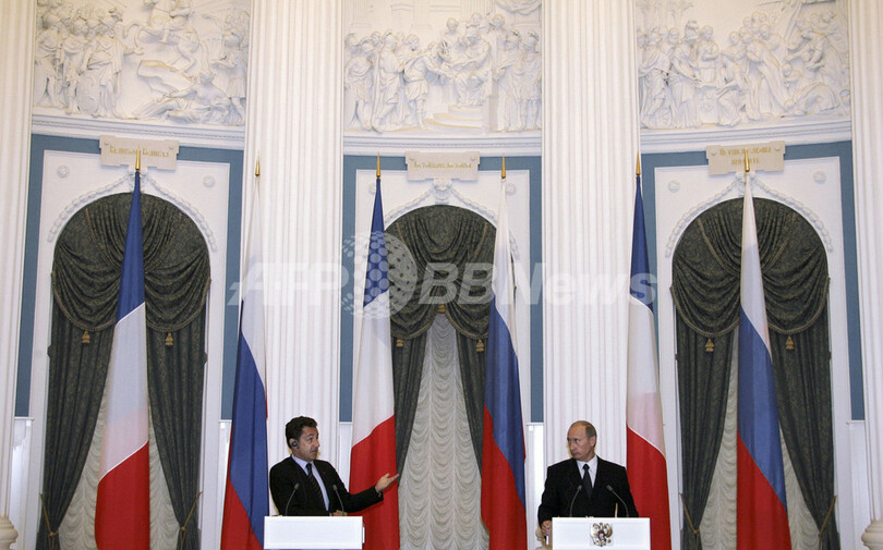 一方、プーチン大統領との会談を終えたサルコジ大統領は「プーチン大統領の意向は重要だ」としながらも「分析に違いがあるかもしれない」と発言。9日夜の夕食会後にサルコジ大統領が示唆した「立場が近づいた」という兆候は見られないようだ。(c)AFP/Philippe Alfroy