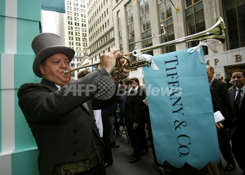 【ニューヨーク 12日 AFP】高級宝飾ブランドのティファニー(Tiffany&Co.)は10日、ニューヨークのウォール街(Wall Street)中心地に新店舗をオープンした。同日開かれたオープニングセレモニーには、マイケル・J・コワルスキー(Michael J. Kowalski)会長兼CEOらと共に“ティファニー・ブルー”のドレスを着たモデルたちがジュエリーを身に付け登場した。