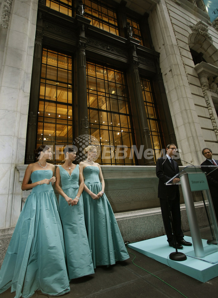 【ニューヨーク 12日 AFP】高級宝飾ブランドのティファニー(Tiffany&Co.)は10日、ニューヨークのウォール街(Wall Street)中心地に新店舗をオープンした。同日開かれたオープニングセレモニーには、マイケル・J・コワルスキー(Michael J. Kowalski)会長兼CEOらと共に“ティファニー・ブルー”のドレスを着たモデルたちがジュエリーを身に付け登場した。