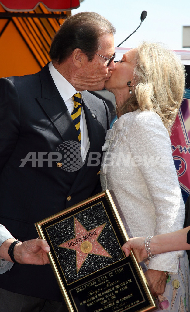 【10月13日 AFP】英俳優ロジャー・ムーア(Roger Moore)がハリウッドの殿堂「ウォーク・オブ・フェーム(Hollywood Walk of Fame)」入りを果たし、11日に記念セレモニーが開催された。007シリーズで1973年から1985年までジェームズ・ボンド(James Bond)役を演じたことで知られるムーアは、2350番目の殿堂入りを果たした。