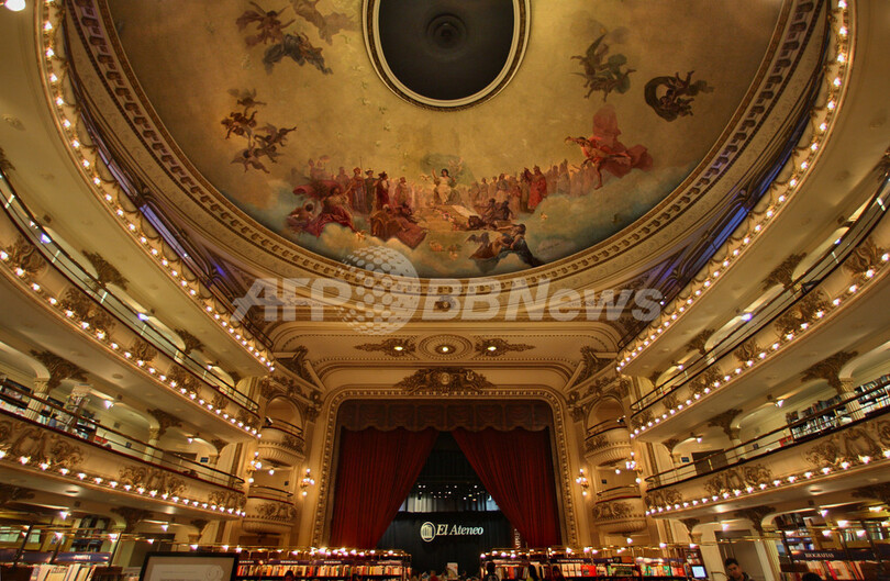 【10月13日 AFP】アルゼンチンの首都ブエノスアイレス(Buenos Aires)にあるエル・アテネオ(El Ateneo)書店は、「ラテン・アメリカで最も重要な書店」とされる。1919年に建設された映画館、グランド・スプレンディド・シネマ(Grand Splendid Cinema)の建物内に店舗を構え、店内は昔の内装をそのまま活かした壮麗な雰囲気。この建物は、オーストリアからの移民だったマックス・グラックスマン(Max Glucksman)氏が建築家のPero AmengoとTorres Amengoの両氏に設計を依頼したもの。ドーム型天井の絵画はイタリアの画家Nazareno Orlandi氏が描いた。2000年に改修されている。(c)AFP