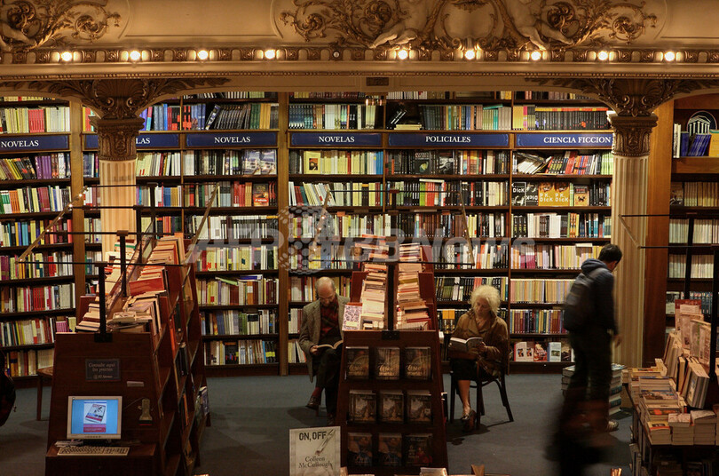【10月13日 AFP】アルゼンチンの首都ブエノスアイレス(Buenos Aires)にあるエル・アテネオ(El Ateneo)書店は、「ラテン・アメリカで最も重要な書店」とされる。1919年に建設された映画館、グランド・スプレンディド・シネマ(Grand Splendid Cinema)の建物内に店舗を構え、店内は昔の内装をそのまま活かした壮麗な雰囲気。この建物は、オーストリアからの移民だったマックス・グラックスマン(Max Glucksman)氏が建築家のPero AmengoとTorres Amengoの両氏に設計を依頼したもの。ドーム型天井の絵画はイタリアの画家Nazareno Orlandi氏が描いた。2000年に改修されている。(c)AFP