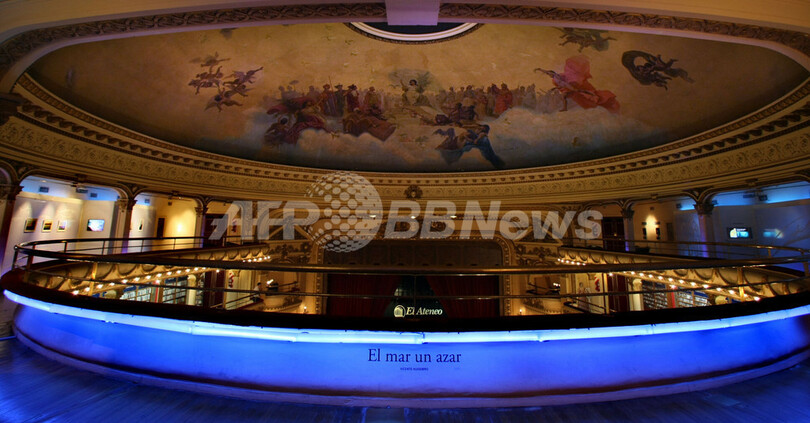 【10月13日 AFP】アルゼンチンの首都ブエノスアイレス(Buenos Aires)にあるエル・アテネオ(El Ateneo)書店は、「ラテン・アメリカで最も重要な書店」とされる。1919年に建設された映画館、グランド・スプレンディド・シネマ(Grand Splendid Cinema)の建物内に店舗を構え、店内は昔の内装をそのまま活かした壮麗な雰囲気。この建物は、オーストリアからの移民だったマックス・グラックスマン(Max Glucksman)氏が建築家のPero AmengoとTorres Amengoの両氏に設計を依頼したもの。ドーム型天井の絵画はイタリアの画家Nazareno Orlandi氏が描いた。2000年に改修されている。(c)AFP