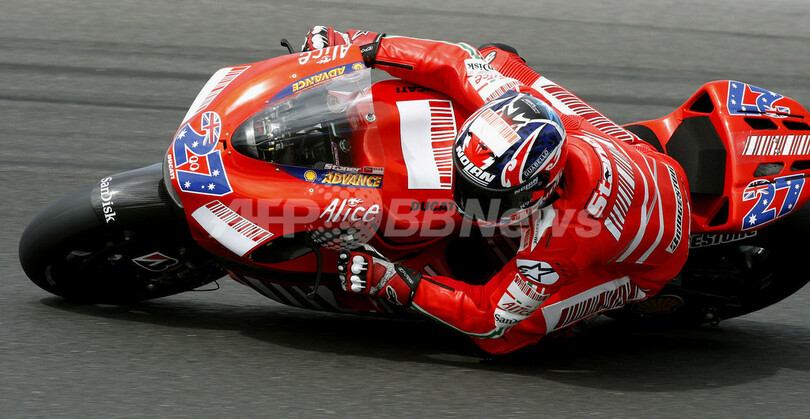 【10月12日 AFP】世界ロードレース選手権(WGP)・第16戦・オーストラリアGP・MotoGPクラス、フリー走行1回目。ドゥカティ・マールボロ(Ducati Marlboro)のケーシー・ストーナー(Casey Stoner)は、18周を走行しベストラップ1分31秒132を記録しトップに立った。