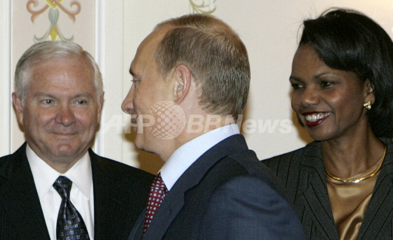 【10月12日 AFP】(写真追加)ロシアのウラジーミル・プーチン(Vladimir Putin)大統領は12日、モスクワ(Moscow)郊外で開かれているコンドリーザ・ライス(Condoleezza Rice)米国務長官、ロバート・ゲーツ(Robert Gates)米国防長官との会談で、ロシア政府が中距離核戦力(INF)全廃条約を破棄する可能性を示唆した。