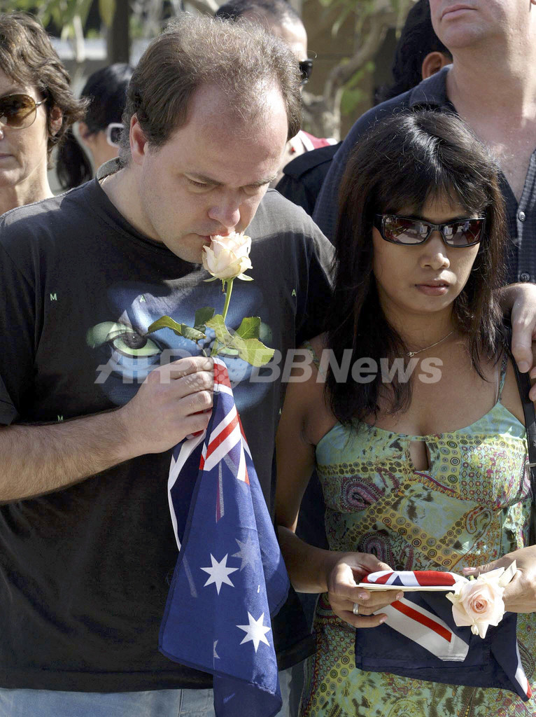オーストラリアをはじめ、日本やニュージーランドなど各国から訪れた大勢の人々が、クタ(Kuta)地区の事件現場で献花した。