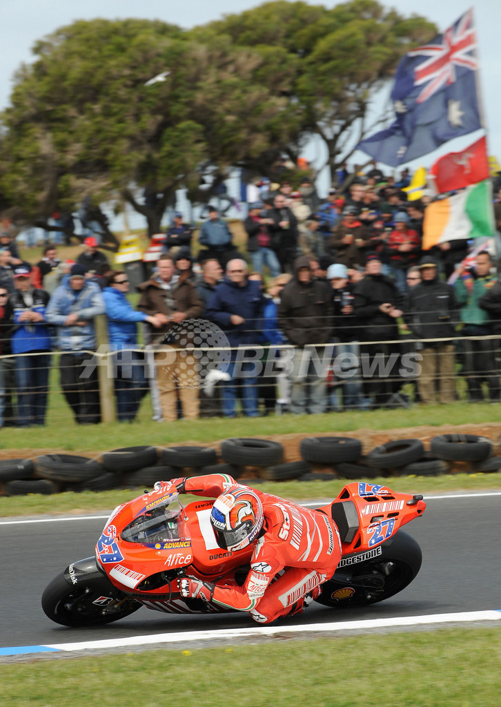 スポーツ モータースポーツ ストーナー オーストラリアGP・予選で3番グリッド獲得 2007年10月13日 19:40 発信地:フィリップ島/オーストラリア [ アジア・オセアニア オーストラリア ] このニュースをシェア ‹ › ❮ 2/5 ❯ 予選に臨むケーシー・ストーナー。(c)AFP/Paul CROCK 画像作成中 ! 【10月13日 AFP】世界ロードレース選手権(WGP)・第16戦・オーストラリアGP・MotoGPクラス、予選。ドゥカティ・マールボロ(Ducati Marlboro)のケーシー・ストーナー(Casey Stoner)は、21周の走行でベストラップ1分29秒816を記録し3番グリッドを獲得した。(c)AFP モータースポーツ 一覧へ> メディア・報道関係・法人の方向け 写真・動画 購入のお問合せ>