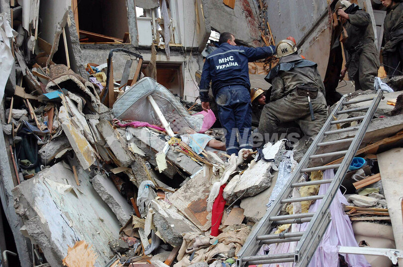 【10月14日 AFP】(10月14日一部更新、写真追加)ウクライナ東部のドニエプロペトロフスク(Dnipropetrovsk)で13日午前11時(日本時間午後5時)、天然ガスが原因とみられる爆発があり、共同住宅の一部と付近の建物の窓が損壊、少なくとも13人が死亡、23人が負傷した。同国の非常事態省が発表した。