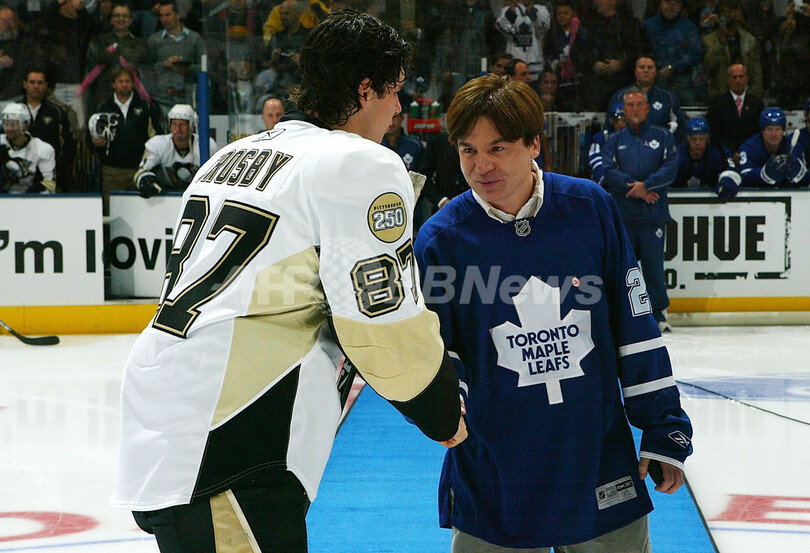 【10月14日 AFP】07-08NHL、トロント・メープルリーフス(Toronto Maple Leafs)vsピッツバーグ・ペンギンズ(Pittsburgh Penguins)の試合が13日、トロント(Toronto)にあるエア・カナダ・センター(Air Canada Centre)で行なわれ、メープルリーフスファンのカナダ人俳優マイク・マイヤーズ(Mike Myers)がフェイスオフのセレモニーに出席した。(c)AFP/Getty Images