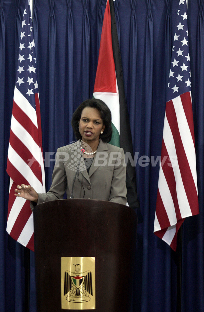 ヨルダン川西岸(West Bank)のラマラ(Ramallah)でアッバス議長と共同記者会見に臨んだライス長官は、「大統領は中東和平問題を在任中の最優先課題としている。問題の前進と早期決着に向けて真剣に取り組む構えであるということだ」と述べ、前週ジョージ・W・ブッシュ(George W. Bush)米大統領が衛星テレビ局アルアラビア(Al-Arabiya)のインタビューで行った発言を繰り返した。