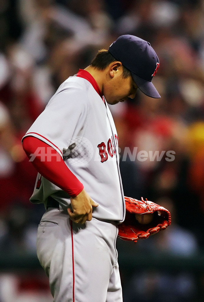【10月16日 AFP】07MLBプレーオフ、ア・リーグ優勝決定シリーズ、クリーブランド・インディアンス(Cleveland Indians)vsボストン・レッドソックス(Boston Red Sox)第3戦。レッドソックス先発の松坂大輔(Daisuke Matsuzaka)は、2回にケニー・ロフトン(Kenny Lofton)に2点本塁打を打たれるなど6安打4失点を喫して4回2/3でマウンドを降り、プレーオフ初黒星を喫した。試合はレッドソックスが2-4で敗れ通算成績を1勝2敗とした。(c)AFP