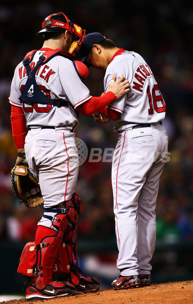 【10月16日 AFP】07MLBプレーオフ、ア・リーグ優勝決定シリーズ、クリーブランド・インディアンス(Cleveland Indians)vsボストン・レッドソックス(Boston Red Sox)第3戦。レッドソックス先発の松坂大輔(Daisuke Matsuzaka)は、2回にケニー・ロフトン(Kenny Lofton)に2点本塁打を打たれるなど6安打4失点を喫して4回2/3でマウンドを降り、プレーオフ初黒星を喫した。試合はレッドソックスが2-4で敗れ通算成績を1勝2敗とした。(c)AFP