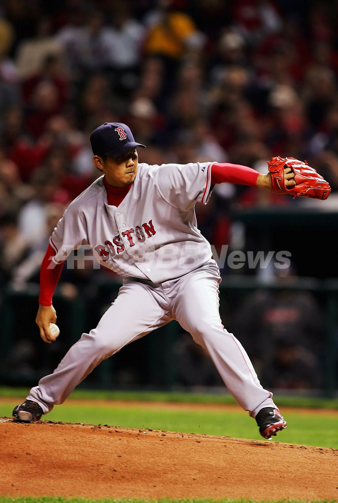 【10月16日 AFP】07MLBプレーオフ、ア・リーグ優勝決定シリーズ、クリーブランド・インディアンス(Cleveland Indians)vsボストン・レッドソックス(Boston Red Sox)第3戦。レッドソックス先発の松坂大輔(Daisuke Matsuzaka)は、2回にケニー・ロフトン(Kenny Lofton)に2点本塁打を打たれるなど6安打4失点を喫して4回2/3でマウンドを降り、プレーオフ初黒星を喫した。試合はレッドソックスが2-4で敗れ通算成績を1勝2敗とした。(c)AFP