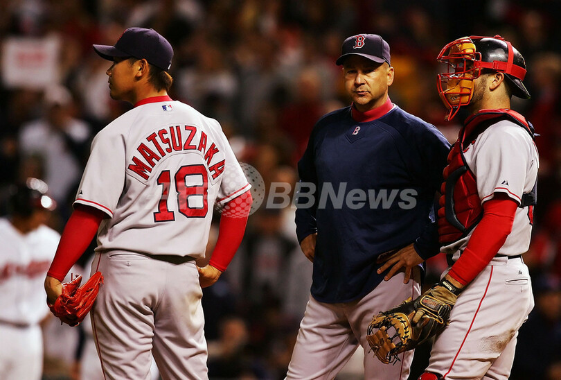 【10月16日 AFP】07MLBプレーオフ、ア・リーグ優勝決定シリーズ、クリーブランド・インディアンス(Cleveland Indians)vsボストン・レッドソックス(Boston Red Sox)第3戦。レッドソックス先発の松坂大輔(Daisuke Matsuzaka)は、2回にケニー・ロフトン(Kenny Lofton)に2点本塁打を打たれるなど6安打4失点を喫して4回2/3でマウンドを降り、プレーオフ初黒星を喫した。試合はレッドソックスが2-4で敗れ通算成績を1勝2敗とした。(c)AFP