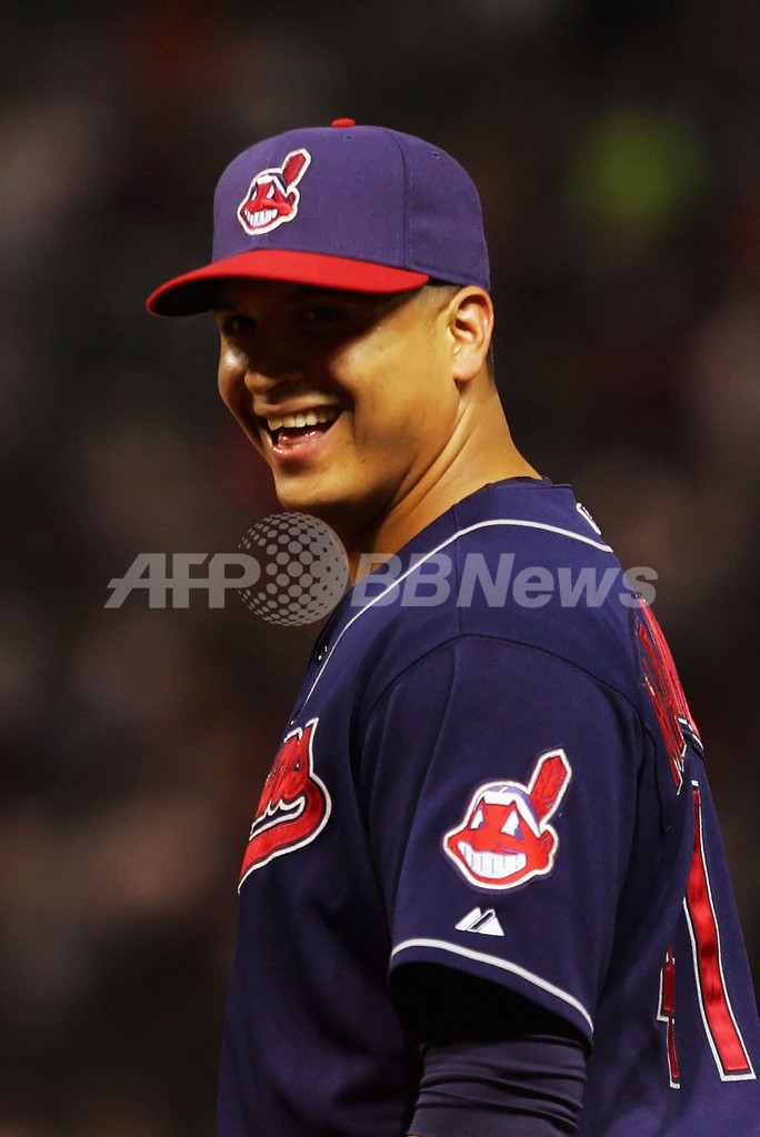 【10月17日 AFP】07MLBプレーオフ、ア・リーグ優勝決定シリーズ、クリーブランド・インディアンス(Cleveland Indians)vsボストン・レッドソックス(Boston Red Sox)、第4戦。5回に先頭打者のケーシー・ブレーク(Casey Blake)のソロ本塁打で先制したインディアンスは、ジョニー・ペラルタ(Jhonny Peralta)の3点本塁打などで一気に7点をリードし、7-3でレッドソックスを降し3連勝でリーグ優勝に王手をかけた。(c)AFP/Getty Images