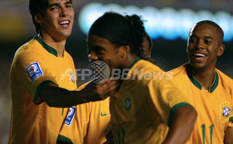 スポーツ サッカー ブラジル エクアドル戦で5得点を挙げW杯予選初勝利 2007年10月18日 14:33 発信地:リオデジャネイロ/ブラジル [ 中南米 ブラジル ] このニュースをシェア ‹ › ❮ 7/16 ❯ 後半17分にチーム2得点目を決めてカカ(%%Kaka%%、左)とロビーニョ(%%Robinho%%、右)から祝福されるブラジルのロナウジーニョ(%%Ronaldinho%%)。(c)AFP/JOAO PAULO ENGELBRECHT 画像作成中 ! 【10月18日 AFP】2010年サッカーW杯南アフリカ大会(2010 World Cup)・南米予選・第2節、ブラジルvsエクアドル。試合はブラジルが5-0で快勝し、予選初白星を挙げ通算成績を1勝1分けとした。(c)AFP サッカー 一覧へ> メディア・報道関係・法人の方向け 写真・動画 購入のお問合せ>