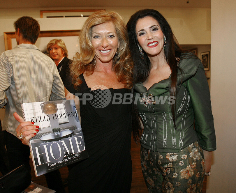 2007年10月17日、ビバリーヒルズの%%Celebrity Vault%%で開催された著書『Home - From Concept To Reality』の出版記念パーティーに出席する著者のケリー・ホッペン(Kelly Hoppen)と建築デザイナーのバーバラ・ラザロフ(%%Barbara Lazaroff%%、右)。(c)AFP/Getty Images Charley Gallay