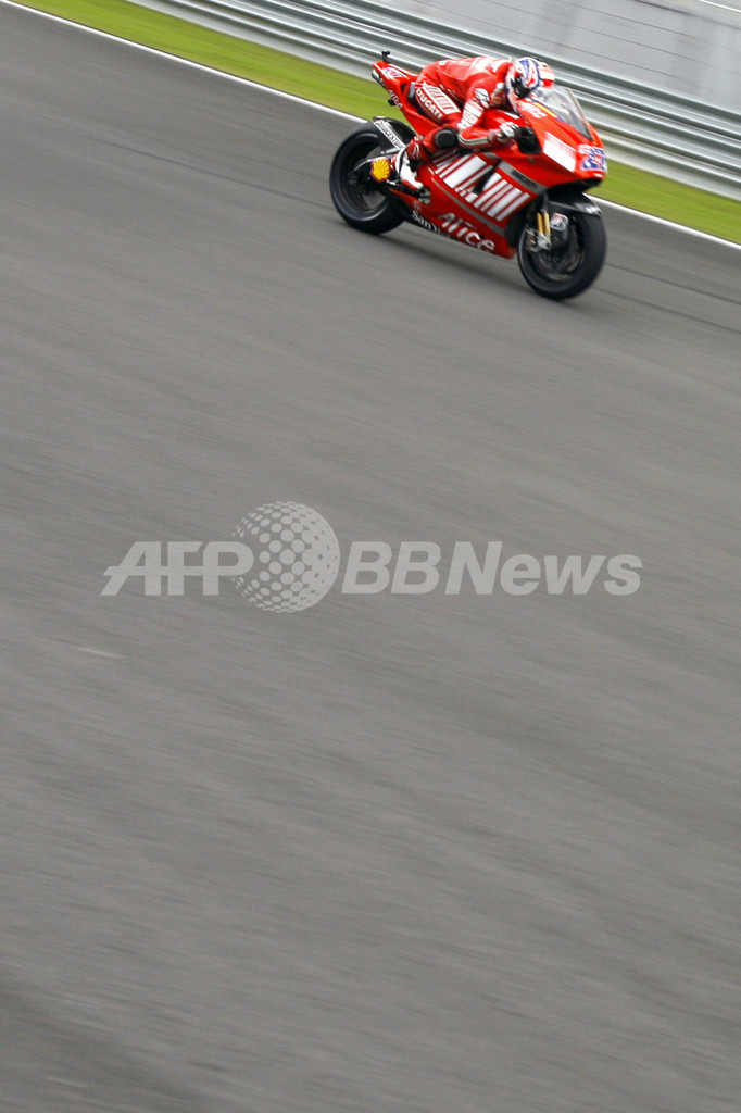 スポーツ モータースポーツ ストーナー マレーシアGP・フリー走行3回目でトップタイム 2007年10月20日 17:06 発信地:セパン/マレーシア [ アジア・オセアニア マレーシア ] このニュースをシェア ‹ › ❮ 2/8 ❯ フリー走行3回目に臨むストーナー。(c)AFP/TENGKU BAHAR 画像作成中 ! 【10月20日 AFP】世界ロードレース選手権(WGP)・第17戦・マレーシアGP・MotoGPクラス、フリー走行3回目。ドゥカティ・マールボロ(Ducati Marlboro)のケーシー・ストーナー(Casey Stoner)は、21周を走行しトップとなるベストラップ2分02秒291を記録した。(c)AFP モータースポーツ 一覧へ> メディア・報道関係・法人の方向け 写真・動画 購入のお問合せ>