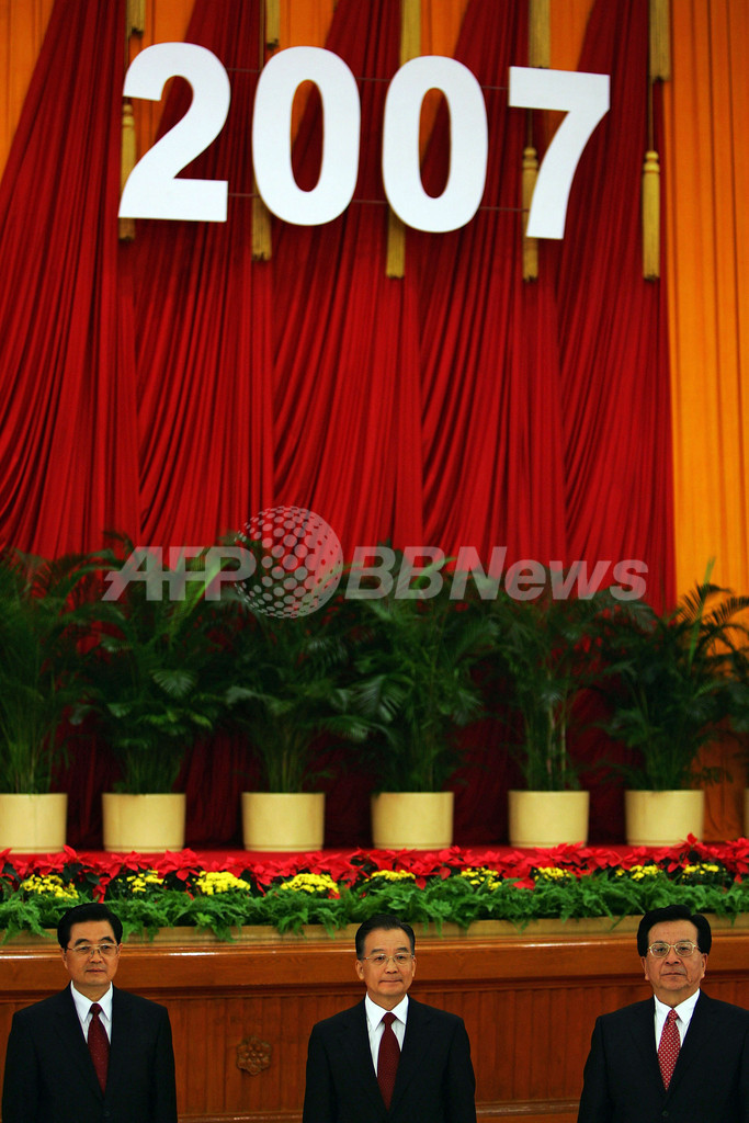 また、同大会は、胡国家主席の経済モデル「科学的発展観」を盛り込んだ改正党規約を採択した。「科学的発展観」とは環境問題や貧富の格差解消に配慮しながら発展を目指す政治理念で、江沢民(Jiang Zemin)前国家主席の下で進められてきた経済発展重視の政策とは対照的。(c)AFP