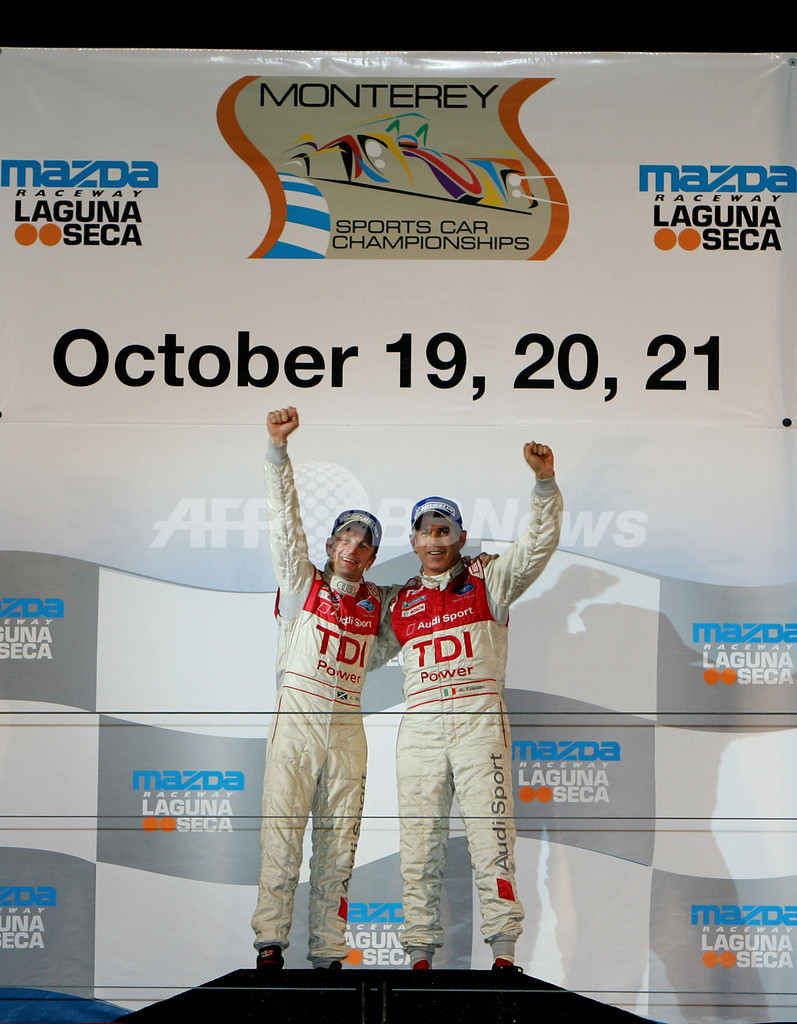 【10月21日 AFP】アメリカン・ル・マン・シリーズ・最終12戦、モントレー・スポーツ・カー・チャンピオンシップス(Monterey Sports Car Championships)。アウディ・スポーツ・ノースアメリカ(Audi Sport North America)のアラン・マクニッシュ(Allan McNish)/リナルド・カペッロ(Rinaldo Capello)組は157周を走破し優勝を果たした。(c)AFP/Getty Images