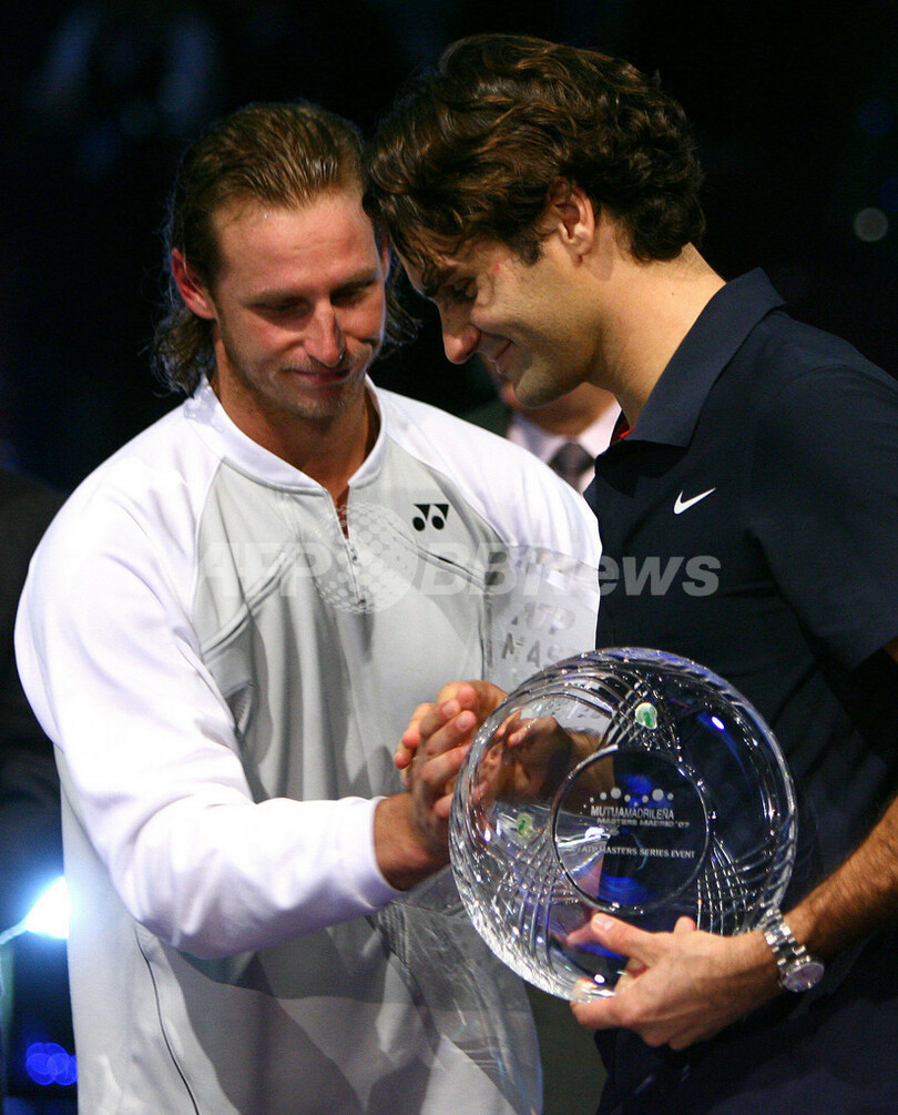 【10月22日 AFP】男子テニス、マスターズ・シリーズ・マドリード大会2007(Mutua Madrilena Masters Madrid 2007)、シングルス決勝。アルゼンチンのダビド・ナルバンディアン(David Nalbandian)は、大会第1シードのロジャー・フェデラー(Roger Federer、スイス)と対戦。ナルバンディアンはセットカウント2-1(1-6、6-3、6-3)で勝利を収め、フェデラーの大会連覇を阻む約18か月ぶりの優勝を果たした。