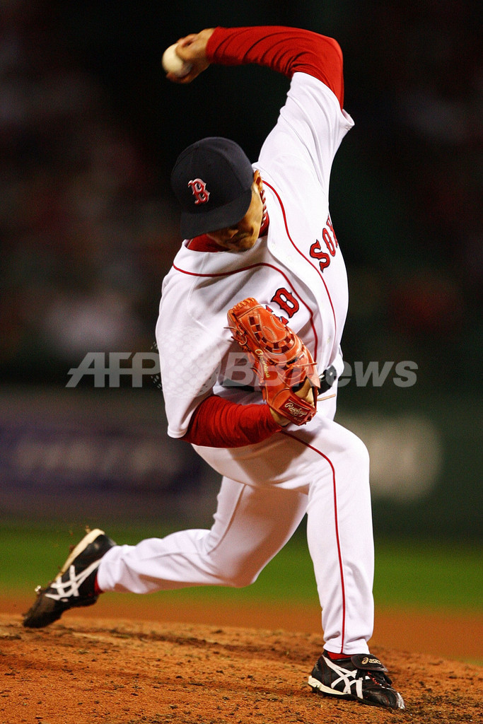 【10月22日 AFP】07MLBプレーオフ、ア・リーグ優勝決定シリーズ、ボストン・レッドソックス(Boston Red Sox)vsクリーブランド・インディアンス(Cleveland Indians)、第7戦。6回から先発の松坂大輔(Daisuke Matsuzaka)の後を受け2番手で登板したレッドソックスの岡島秀樹(Hideki Okajima)は、2回0/3を投げ3安打無失点で降板した。試合はレッドソックスが11-2でインディアンスに大勝し3年振りのワールドシリーズ進出を決めた。レッドソックスは現地24日から開幕するワールドシリーズでコロラド・ロッキーズ(Colorado Rockies)と対戦する。(c)AFP