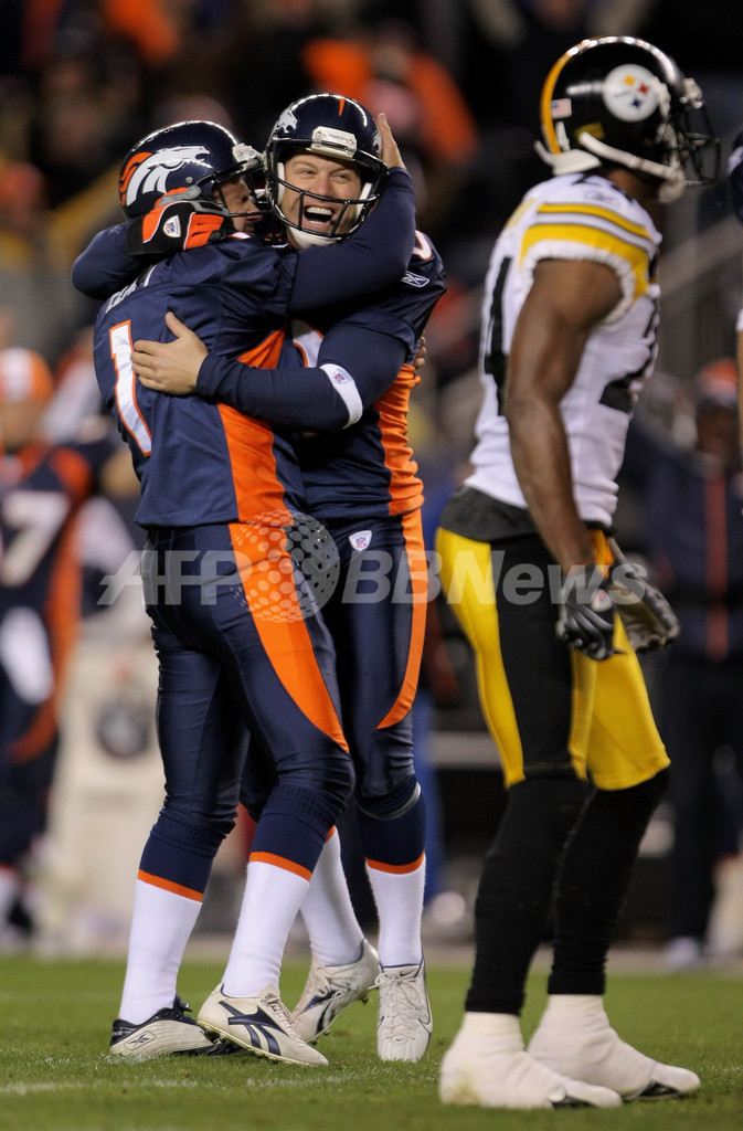 スポーツ アメリカンフットボール ブロンコス スティーラズとの接戦制し連敗を3で止める 2007年10月22日 15:54 発信地:デンバー/米国 [ 北米 米国 ] このニュースをシェア ‹ › ❮ 4/10 ❯ 同点で迎えた第4Q残り2秒に決勝の49ヤードのフィールドゴールを決めてホルダーのトッド・サウワーブラン(%%Todd Sauerbrun%%、中央)と歓喜するブロンコスのキッカー、ジェソン・イーラム(%%Jason Elam%%、左)。(c)AFP/Getty Images Doug Pensinger 画像作成中 ! 【10月22日 AFP】07NFL・第7週、デンバー・ブロンコス(Denver Broncos)vsピッツバーグ・スティーラーズ(Pittsburgh Steelers)。試合はブロンコスが31-28でスティーラーズを接戦で降し、連敗を3で止めた。(c)AFP/Getty Images アメリカンフットボール 一覧へ> メディア・報道関係・法人の方向け 写真・動画 購入のお問合せ>