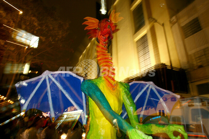 【10月23日 AFP】メキシコの首都メキシコ市(Mexico City)で20日、伝統工芸品の人形によるパレード「La Noche de los Alebrijes(アレブリヘスの夜)」が盛大に催された。「アレブリヘス」とは、1936年にメキシコ人の工芸職人のペドロ・リナレス(Pedro Linares)氏によって作られた、カラフルな色合いが特徴の木工芸品の人形。パレードには、さまざまなデザインの色鮮やかなアレブリヘスが参加した。(c)AFP