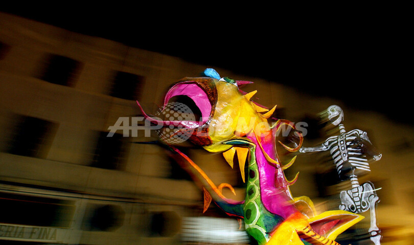 【10月23日 AFP】メキシコの首都メキシコ市(Mexico City)で20日、伝統工芸品の人形によるパレード「La Noche de los Alebrijes(アレブリヘスの夜)」が盛大に催された。「アレブリヘス」とは、1936年にメキシコ人の工芸職人のペドロ・リナレス(Pedro Linares)氏によって作られた、カラフルな色合いが特徴の木工芸品の人形。パレードには、さまざまなデザインの色鮮やかなアレブリヘスが参加した。(c)AFP